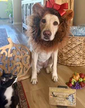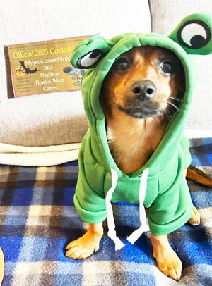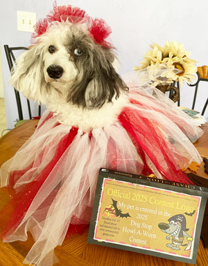 Pictured below you will see all entries in the 2025 Halloween Pet Costume Contest. They appear in order that their images were submitted. When you are ready to vote, click ENTER VOTING BOOTH. You can only enter one time. You cannot go back in twice. Once in the voting booth, you can vote for your two favorite pets in costume.