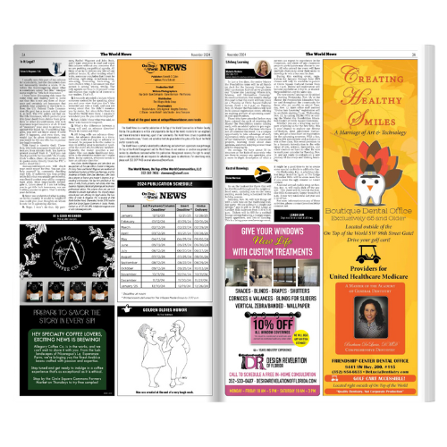 The World News is your connection to life at On Top of the World, a vibrant 55+ community. Delivered monthly to over 9,700 households, with 2,000 additional copies in racks and an average of 1,200 online views per month, it’s the go-to source for uplifting stories, events, and good news. Articles are written by and for residents, and each issue becomes a valuable reference for community happenings.
