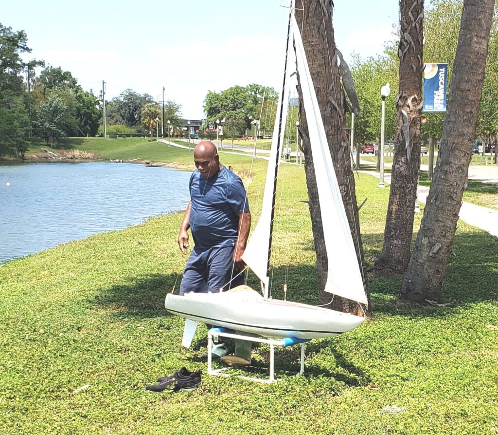 And even now, after all this time, Champ is still following that dream. He’s been working on his most special R/C sailboat for the past six months. He didn’t just buy it; he designed it himself, cut the tiny pieces of wood, put them all together, painted it beautifully, figured out all the little lines (rigging), and even used a needle and thread to sew the tiny sails himself!
