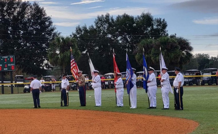 The third annual Veterans Day Classic Softball Tournament was a smash hit. Fifty-five resident veterans took to the baseline pathways for opening ceremonies led by Steve Petty, captain, US Army, retired and members of the Marion County Memorial Honor Guard parading the colors onto the infield for the playing of the National Anthem and tossing of the ceremonial first pitch by Charles Calhoun, president of the Veterans Club.