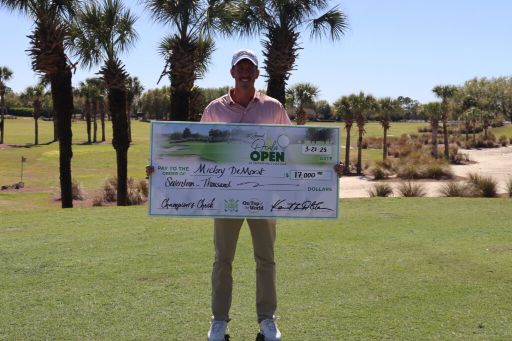 The Ocala Open golf tournament teed off on March 19, spanning through March 21, 2025. The fair weather provided ideal game conditions for the 144 golfers. Ultimately, Mickey DeMorat of Merritt Island, Florida, claimed the victory score totaling -15 with 198 strokes. “Congratulations to Mickey DeMorat, who played like a true golf champion. The 20th annual Ocala Open was a great success, and we thank the sponsors, players, volunteers, and community for supporting local non-profits and making a positive impact in the lives of people facing hardship,” states Matt Hibbs, director of golf at On Top of the World Communities.