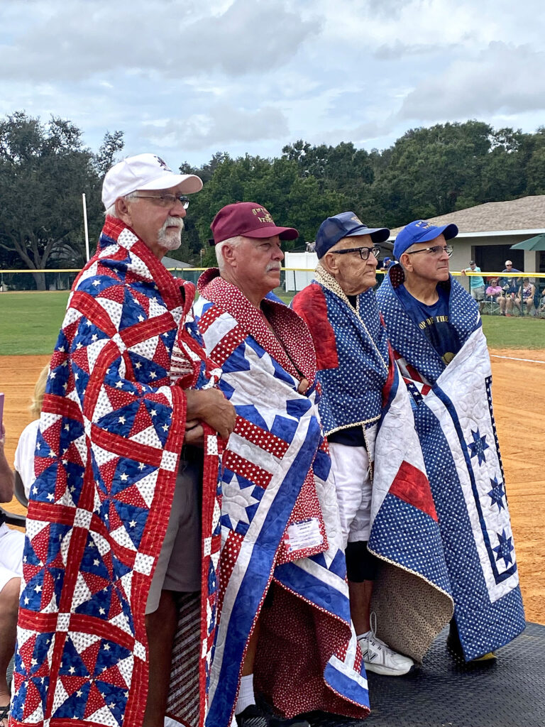 On Nov. 9, 2024, Whitney, herself a veteran, presented Quilts of Valor honors to four resident veterans: US Navy Petty Officer 2nd Class Jeff Thomas 1965-1968 Vietnam Vet, US Marine Sergeant Wayne Kiser Vietnam Vet 1972-1976 and Afghanistan War Vet 2009-2012, US Army Specialist Jimmy Huff 1954-1956 Cold War Vet, and US Air Force Captain (Retired) Pete Feliciano 1974-2001 Vietnam Era and Gulf War Era Veteran.