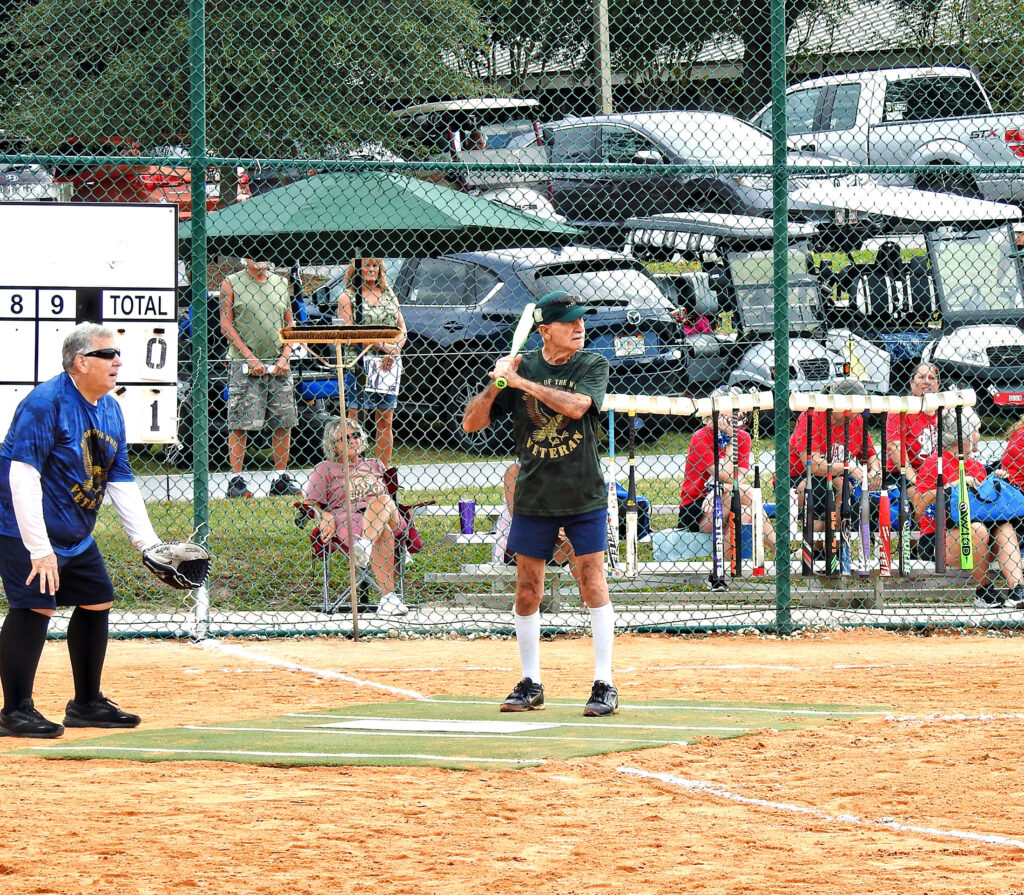 The third annual Veterans Day Classic Softball Tournament was a smash hit. Fifty-five resident veterans took to the baseline pathways for opening ceremonies led by Steve Petty, captain, US Army, retired and members of the Marion County Memorial Honor Guard parading the colors onto the infield for the playing of the National Anthem and tossing of the ceremonial first pitch by Charles Calhoun, president of the Veterans Club.